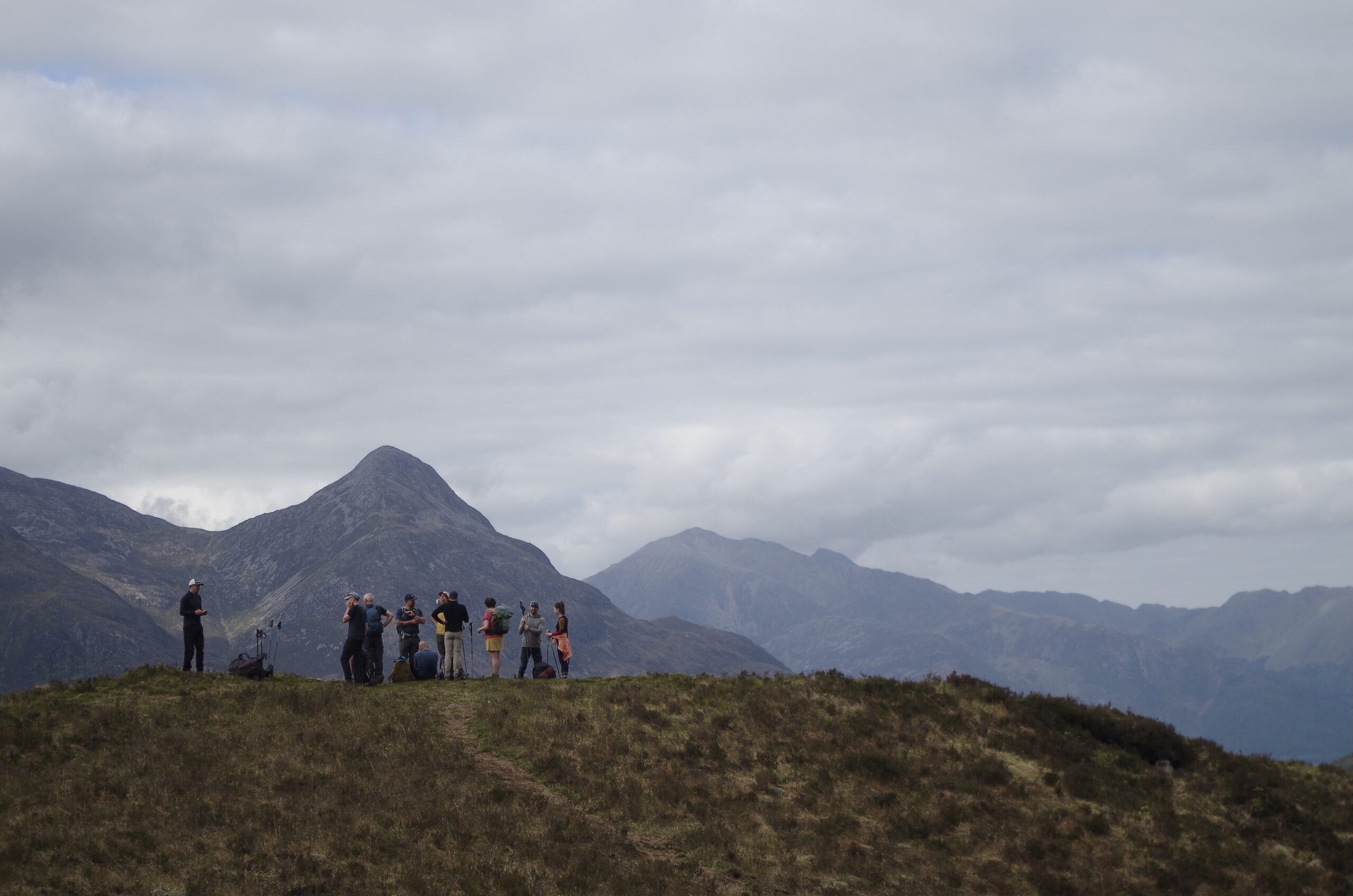 L’ascension révèle progressivement les Highlands dans toute leur splendeur. Vous traversez d’abord les landes verdoyantes, puis les éboulis rocheux avant d’atteindre le plateau sommital souvent noyé dans les nuages.