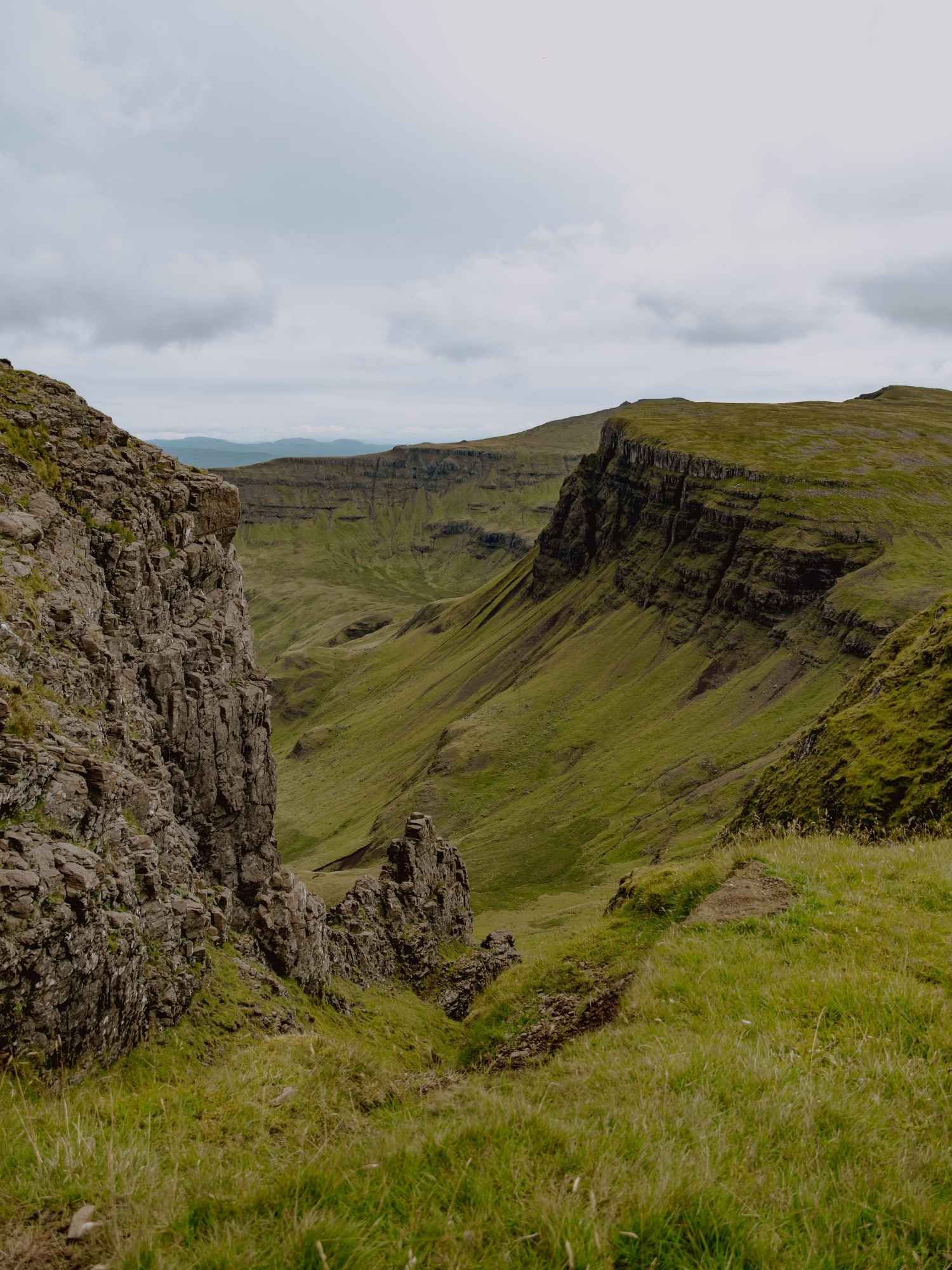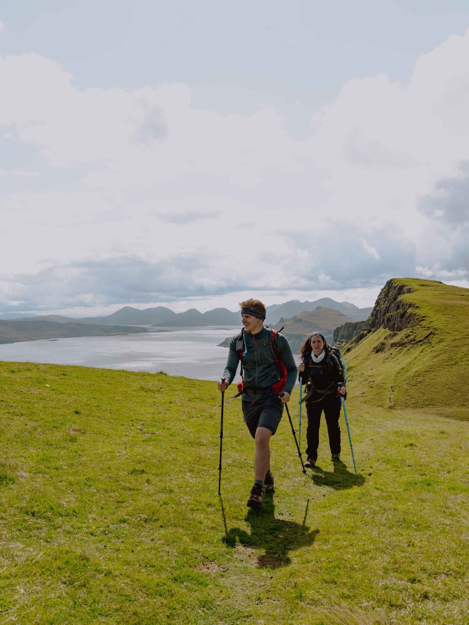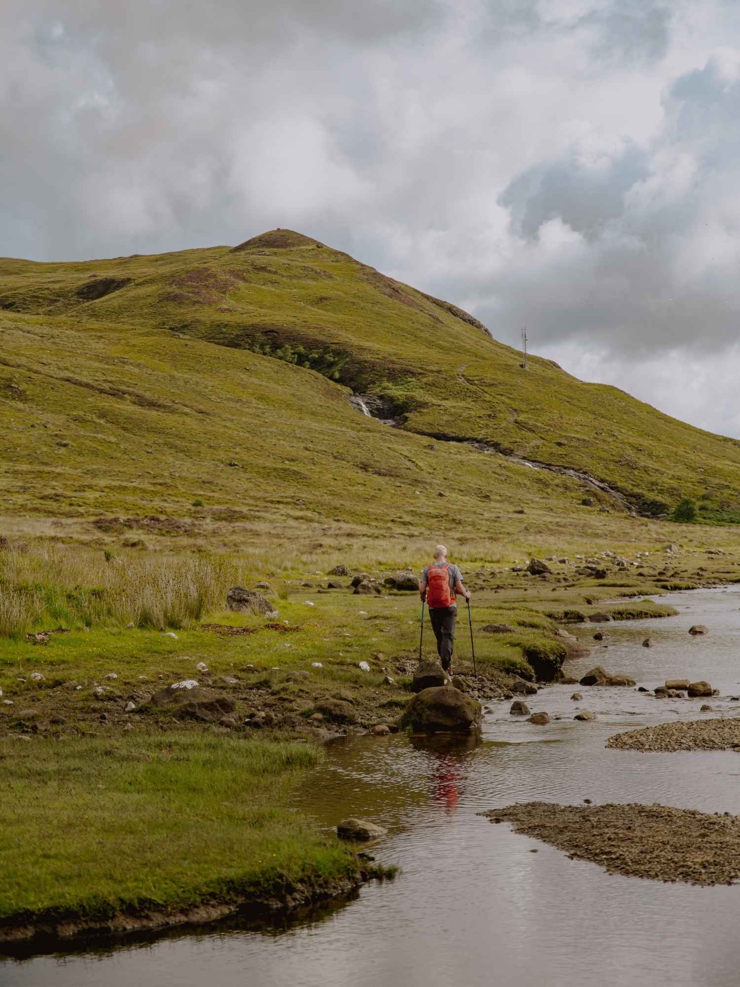 Wandelen in Schotland betekent wandelen over natte, ongelijke en soms moerassige ondergronden. Een gewone sneaker is hier niet genoeg. Je wil stevige wandelschoenen of -laarzen met een goede grip én waterdichte voering, Gore-Tex of vergelijkbaar. Een model dat tot aan de enkel komt biedt extra steun op rotsachtig terrein, zoals je dat vindt op de Isle of Skye.