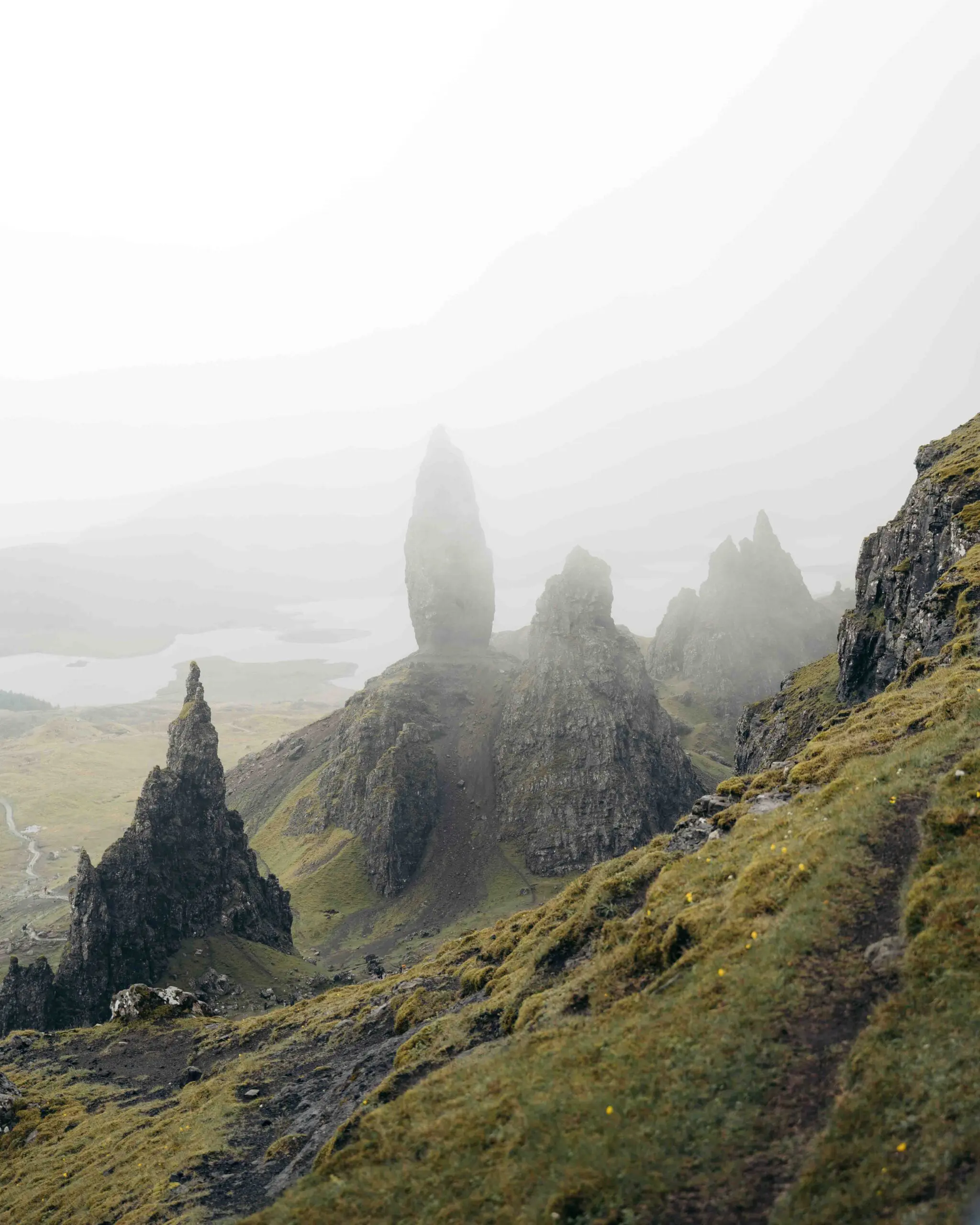 De Trotternish Ridge is een 30 kilometer lange bergkam die het noordelijke Isle of Skye domineert. Ontstaan door een gigantische aardverschuiving zo’n 55 miljoen jaar geleden, toen vulkanisch gesteente langzaam naar de zee gleed en deze bizarre formaties achterliet.
