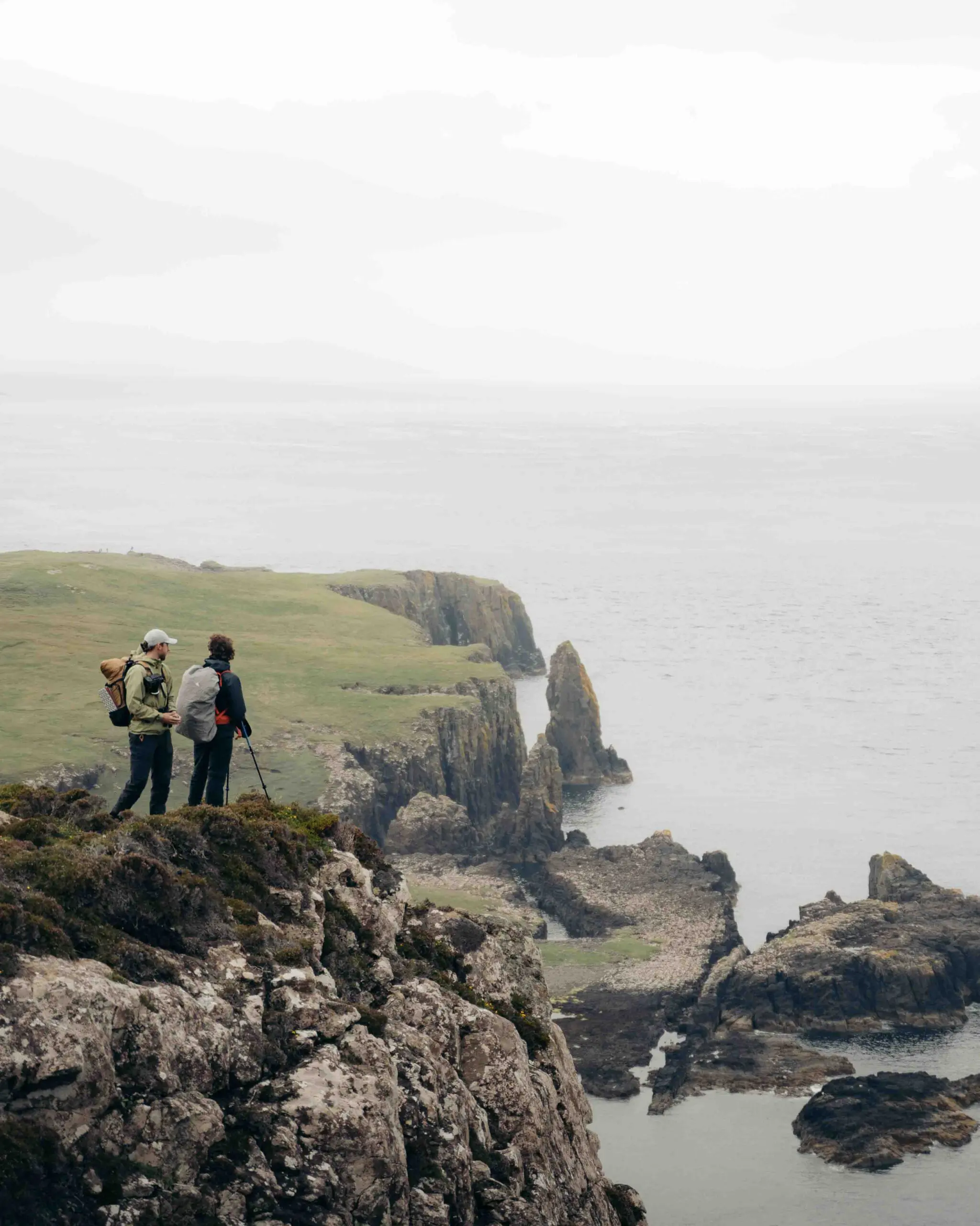 Je zet je tent op een beschut plekje net onder de kam. De zon zakt in de Atlantische Oceaan en kleurt de lucht paars en oranje. Je kookt je avondeten terwijl schapen nieuwsgierig langslopen. Er is geen geluid behalve de wind en af en toe een roofvogel.