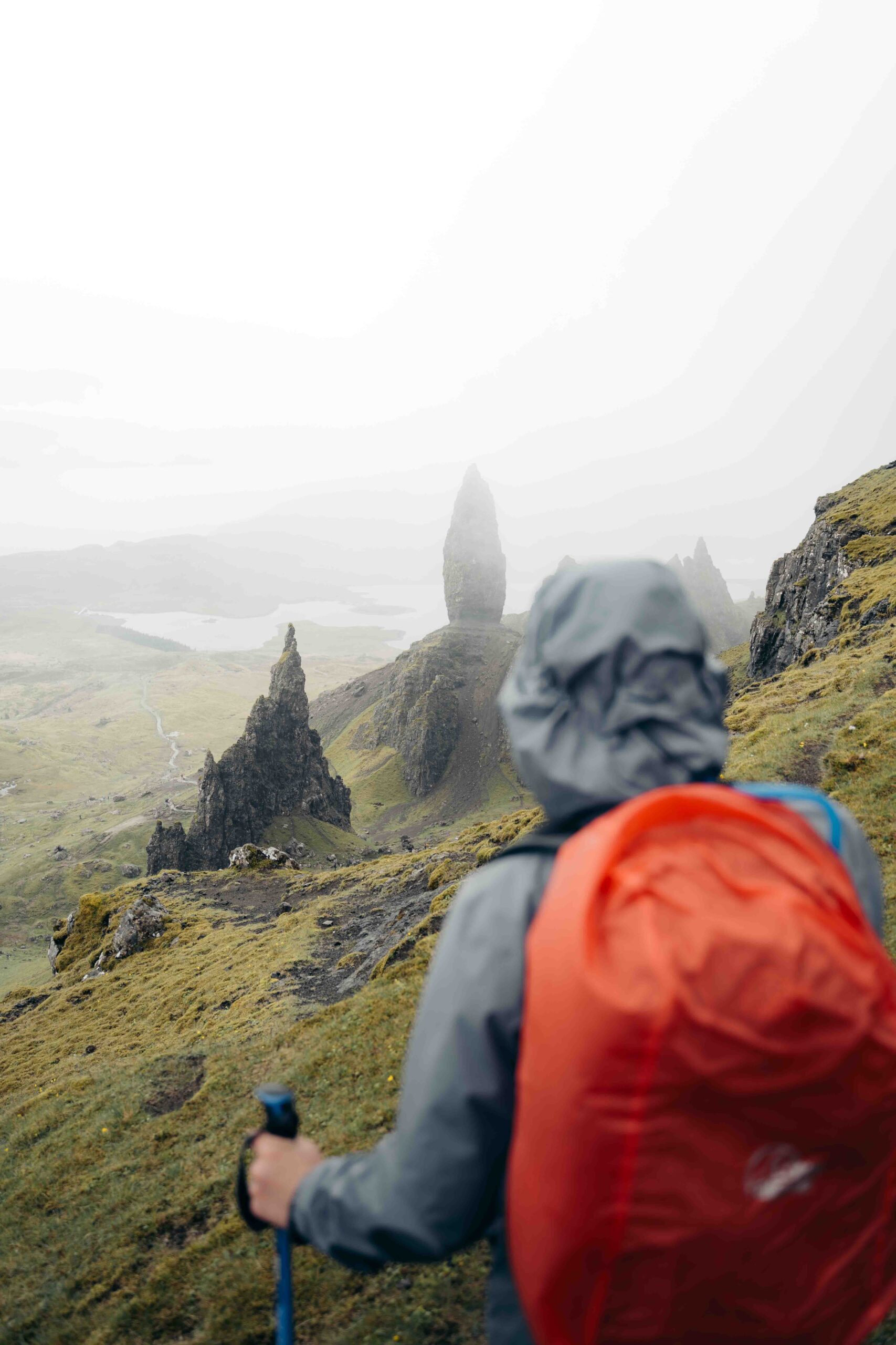 Weer: Dit is Schotland. En dan nog eens de Isle of Skye. En dan nog eens op een bergkam. Verwacht regen, wind, mist en misschien een zonnestraaltje. Pak kleding in lagen: baselayer, midlayer, waterdichte buitenlaag. Een goede regenjas is geen luxe maar noodzaak.
